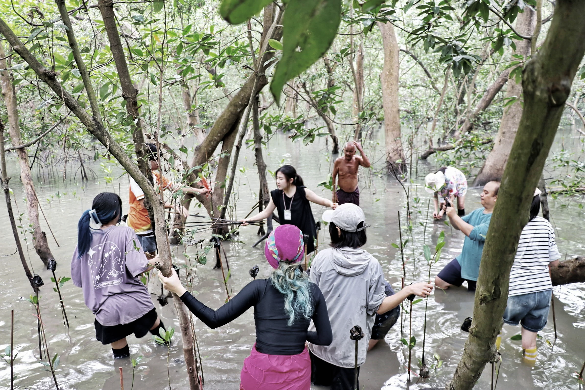 Our mangrove volunteering involves hands-on planting in muddy coastal areas to help restore mangrove forests. Mangroves play a vital role in protecting coastlines, supporting marine life, and absorbing carbon.